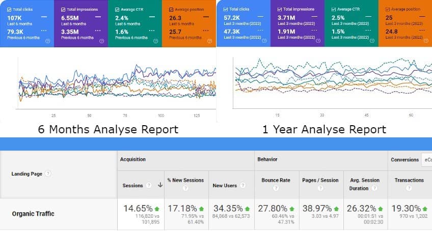 The following images show the continuous organic traffic improvements compared to the last 6 Months & 1 Year of Data.